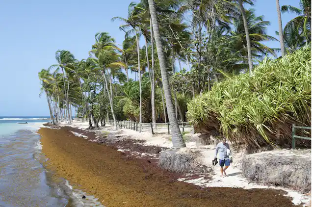 By 2024 the sargassum blooms, tracked satellites, stretched 5,750 km from the Amazon to the Congo River in West Africa with an estimated mass of 25 million tonnes.